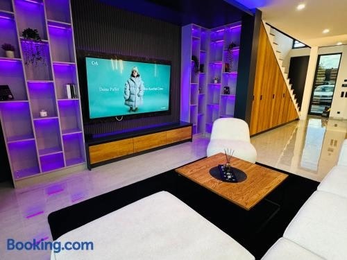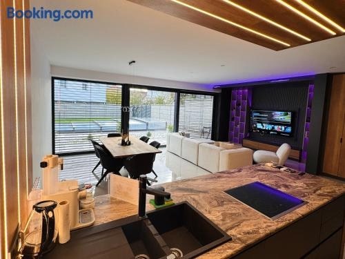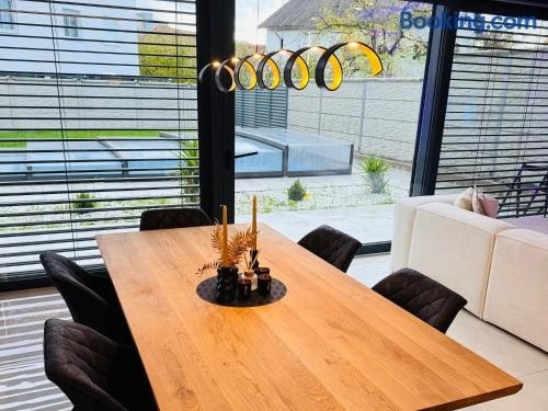Design-Villa mit beheiztem Pool & stimmungsvoller Beleuchtung ligger i Linz. Her er gratis wi-fi og udsigt til en have. Derudover er der en sæsonåben udendørs swimmingpool og vandsportsfaciliteter.
