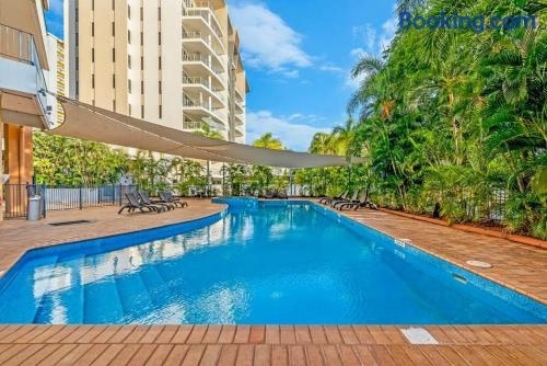 Towering Palms, A Seaside Balcony with Resort Pool ligger lige i centrum af Darwin, 2,4 km fra Mindil Beach og 5 minutters gang fra Darwin Entertainment Centre. Her er en balkon og gratis wi-fi. Denne lejlighed har en gårdhave.