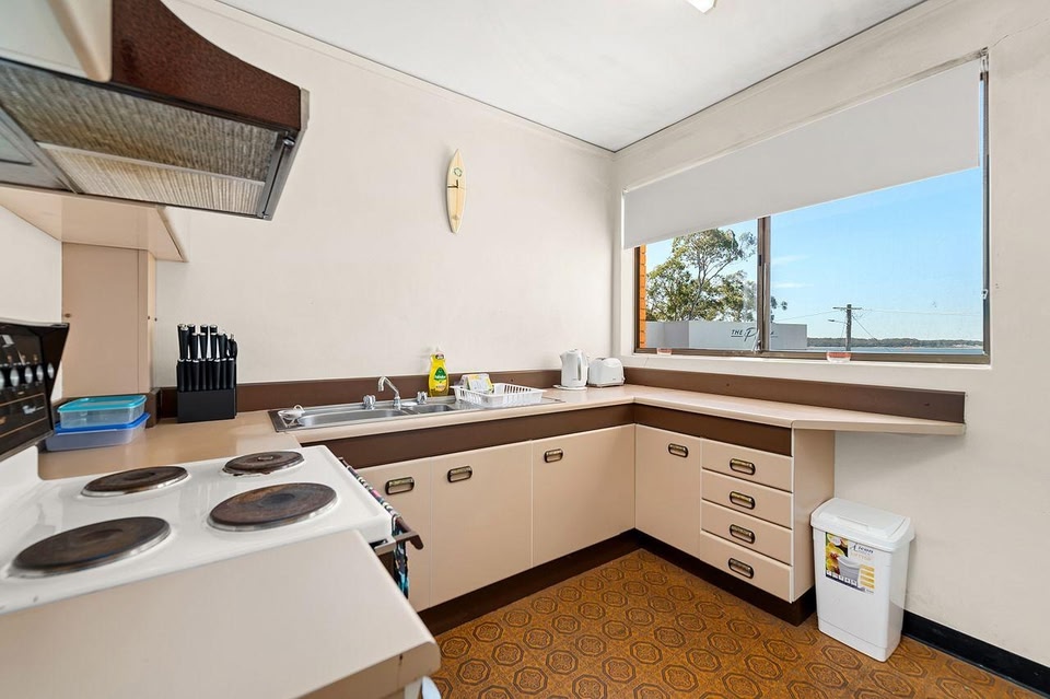 Triview Mitchell Street Unit 4 1 Soldiers Point ligger ca. 3 minutters gang fra Soldiers Point Marina. Her er balkon, kedel og havudsigt.
