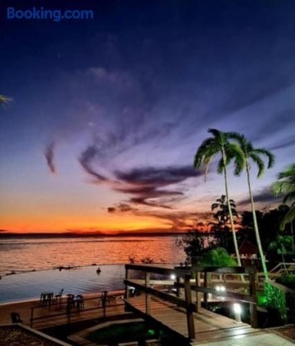 710 Encanto do Rio com vista única ligger ca. 0 minutters gang fra Praia de Ponta Negra Strand. Her er udsigt til floden, en udendørs swimmingpool, en have og en bar.
