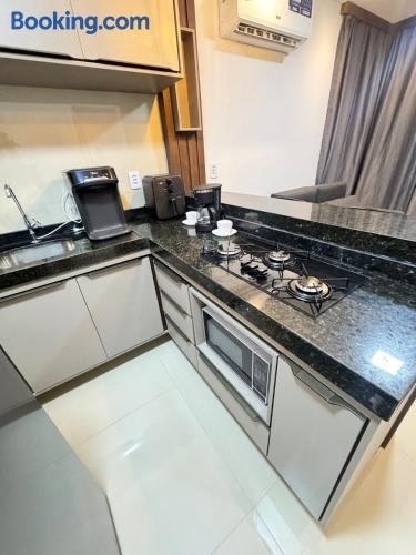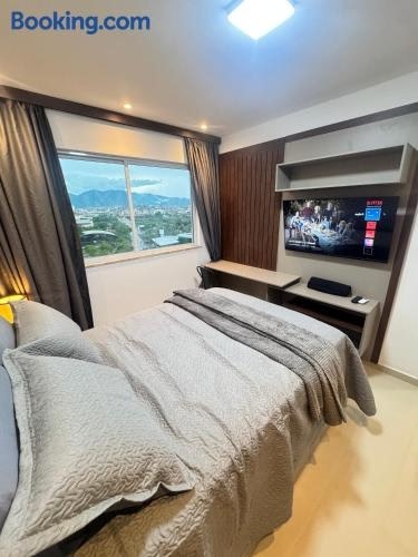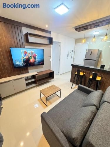 Melhor AP em Sobral de frente ao Shopping ligger i Sobral med pooludsigt. Her er en udendørs swimmingpool, et fitnesscenter og en have. Der er også gratis wi-fi. Denne lejlighed har gratis privat parkering og en døgnåben reception.