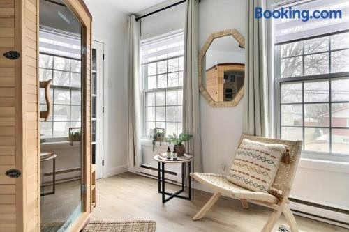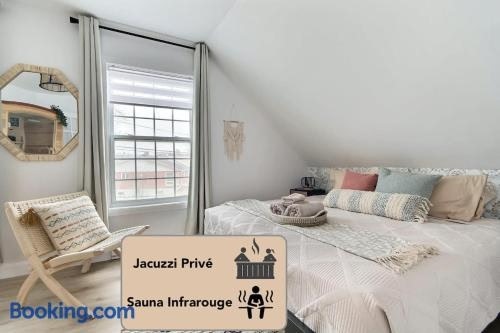 Lovely Boho Spa Sauna AC and Free Parking ligger ca. 7,7 km fra Vieux-Québec og har en have, gårdhave og havudsigt. Overnatningsstedet ligger 8 km fra Basilique Cathedrale Notre Dame de Quebec, og der er gratis wi-fi overalt.