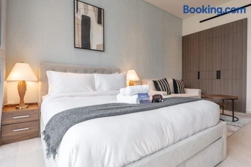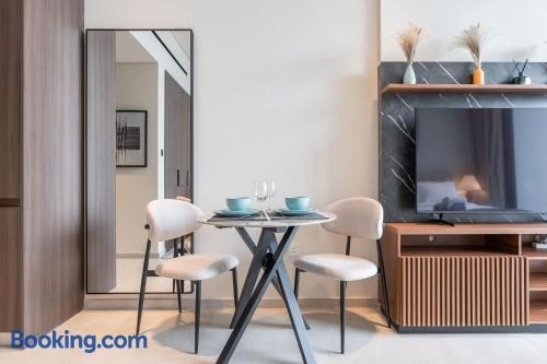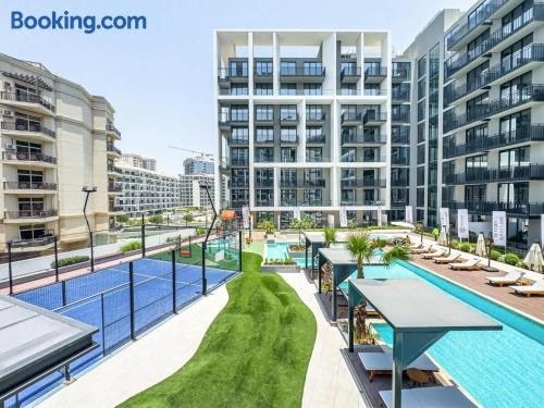 Modern Studio - Pool, Gym & Padel ligger i Dubai og har en balkon pooludsigt samt udsigt til en have. Derudover er der en udendørs pool (der er åben hele året), et fitnessrum og et boblebad. License number: ALB-BEV-N6CY3