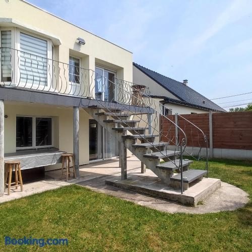 Offering a garden and quiet street view, Maison chaleureuse avec parking gratuit sur place is situated in Coulogne, 8 km from Calais Railway Station and 15 km from Cap Blanc Nez.