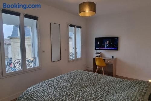 Appartement climatisé entièrement rénové en hyper centre! Le Rétro Chic - Parking gratuit - Linge et serviettes inclus - ligger i La Roche-Chalais, Aquitaine og har en have. Overnatningsstedet har aircondition og ligger 20 km fra Lande Golf Course.