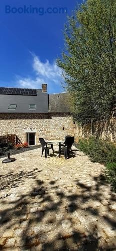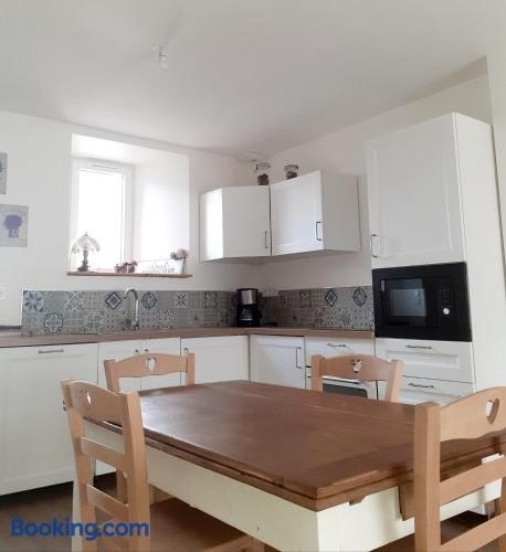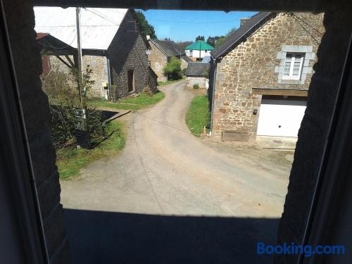 Offering quiet street views, Au Lutin Pommé - Maison de vacances Bretagne is an accommodation located in Mellé, 40 km from Mont Saint Michel Abbey and 40 km from Mont Saint-Michel.