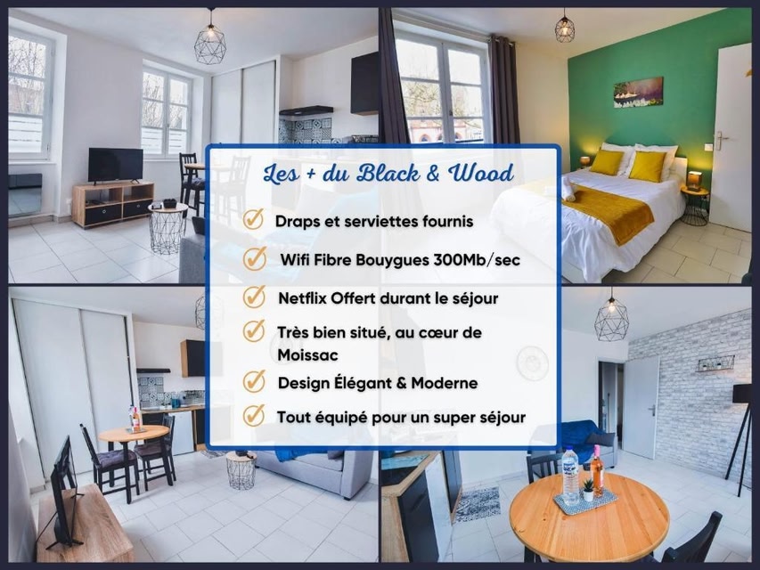 Apt T2 Bck and Wood "Cottage Moissac" ligger i Moissac, 19 km fra Espalais Golf Club og 28 km fra Les Aiguillons Golf Course. Her er gratis wi-fi og et fladskærms-tv.