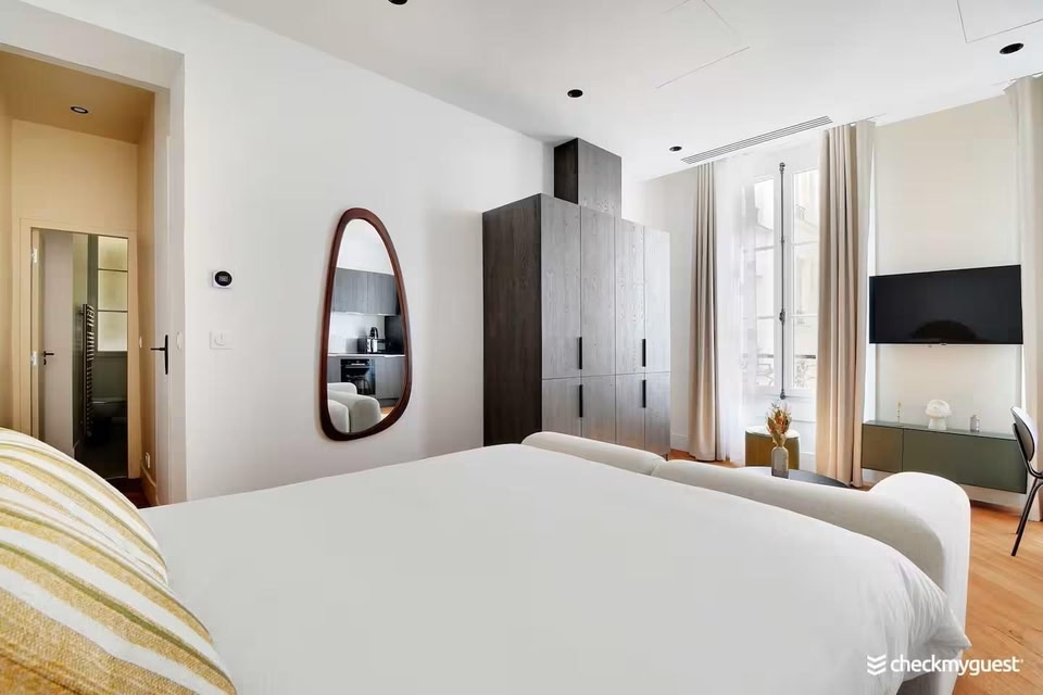 Experience Paris like never before in our charming aparthotel located just steps away from the iconic Palais Garnier.Prime LocationNestled in the heart of the 8th Arrondissement, you are only a 5-minute stroll from Galeries Lafayette and Rue de Rivoli, placing you within easy reach of the city's most famous sights.Comfort & ConvenienceOur air-conditioned apartments are designed for your relaxation, equipped with essential amenities including a refrigerator, microwave, and a washer/dryer, ensuring you feel right at home during your stay.Entertainment at Your FingertipsEnjoy digital television in the comfort of your apartment, and brew a cup of coffee or tea with the in-room coffee/tea maker as you unwind after a day of exploring.Don't miss out on this perfect Parisian getaway – book your stay today!