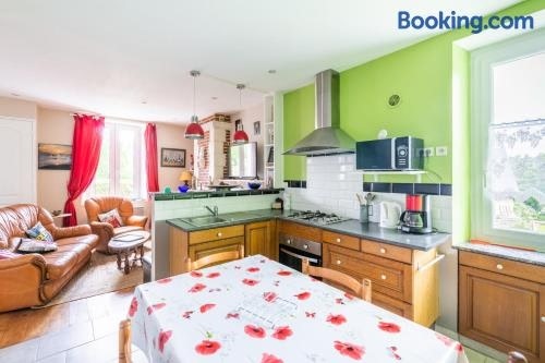 Featuring a terrace, Maison confortable à Rostrenen avec jardin et cheminée features accommodation in Rostrenen. This holiday home features a garden and free private parking. Outdoor seating is also available at the holiday home.