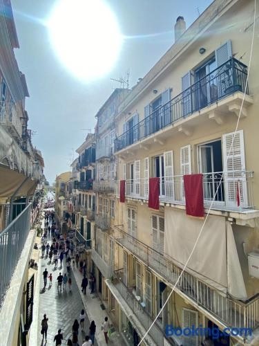 Casa Chalichiopoulo, Corfu Town har en god beliggenhed i i et centralt område af Korfu By og tilbyder udsigt til byen og en terrasse. Denne lejlighed har en balkon samt gratis wi-fi.