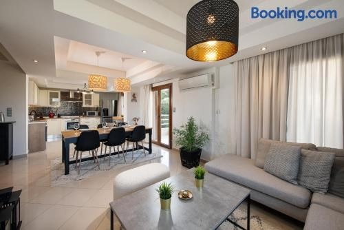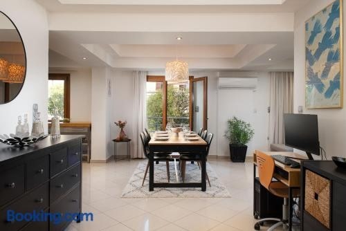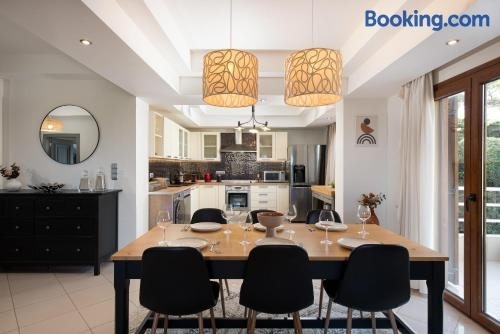 Dora 3 bedroom apartment ligger i Rhodos By, 8 minutters gang fra Paralia Akti Kanari Strand og mindre end 1 km fra Mandraki havn. Her er gratis wi-fi, aircondition, et fælles opholdsområde og en terrasse.