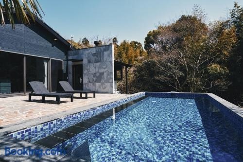 THE NEST 森の灯 MUNAKATA by ritomaru ligger i Munakata, 4,1 km fra Joko-ji Temple. Her er en sæsonåben udendørs swimmingpool, gratis wi-fi og en concierge-tjeneste. Denne villa har privat pool, have og gratis privat parkering. License number: M400047330