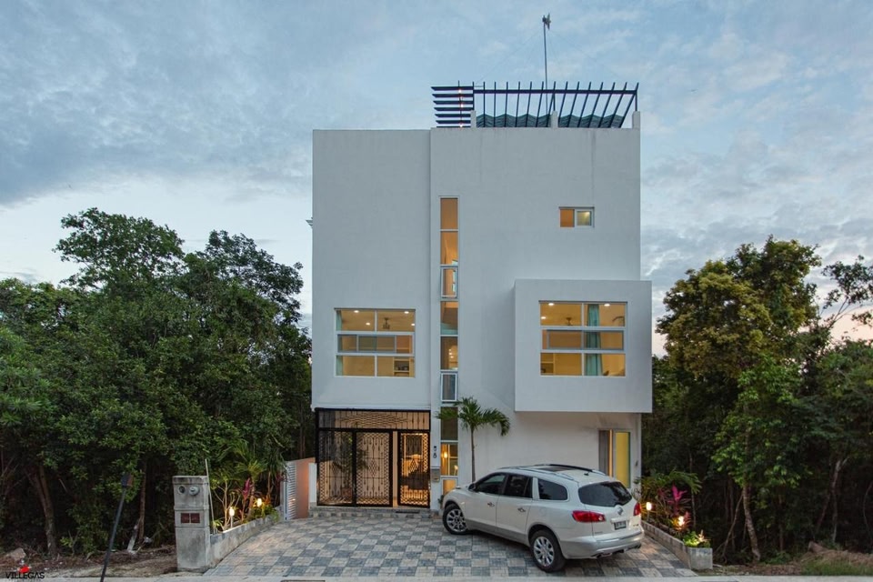 Residence 8 min from the beach ligger i Puerto Morelos med udsigt til en have. Her er en udendørs swimmingpool, et fitnesscenter og en have. Der er også gratis wi-fi. Dette feriehus har gratis privat parkering og en børneklub.