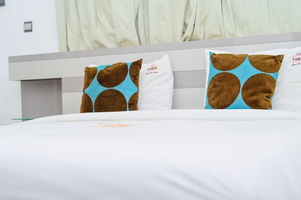 Dette lejlighedshotel befinder sig i centrum i Abuja. Jabi Lake Indkøbscenter og Maitama Farmers Market er begge et besøg værd, hvis shopping er på agendaen, mens dem der hellere vil nyde naturen, kan kigge forbi Jabi Lake Park og Millennium Park. Lejlighed med køkken i Abuja Overnatningsstedet er røgfrit og har vaskeservice, en døgnåben reception og gratis selvstændig parkering. Gæster tilbydes gratis Wi-Fi på fællesarealer. Denne lejlighed har køkken med køleskab, ovn, kogeplade og mikrobølgeovn. Gæster kan desuden nyde godt af faciliteter såsom 8 badeværelser, en tørretumbler og et fladskærms-tv med satellitkanaler. Dette lejlighedshotel har 8 værelser med strygejern/strygebræt og gratis toiletartikler. Dette lejlighedshotel med 3,5 stjerner har værelser med køkken, der er udstyret med køleskab, kogeplade, mikrobølgeovn og køkkentøj/tallerkener/redskaber. Badeværelserne omfatter bruser. Gæster kan altid komme på nettet med den gratis trådløse internetforbindelse. Der er fladskærms-tv med satellitkanalerkanaler. Rengøring tilbydes dagligt.