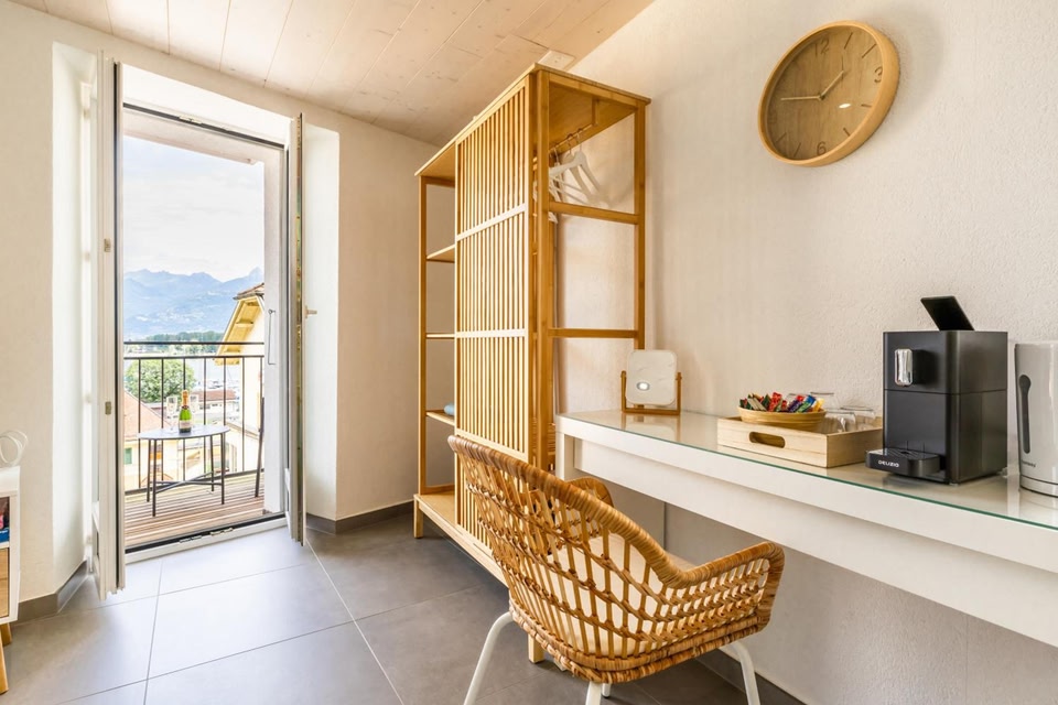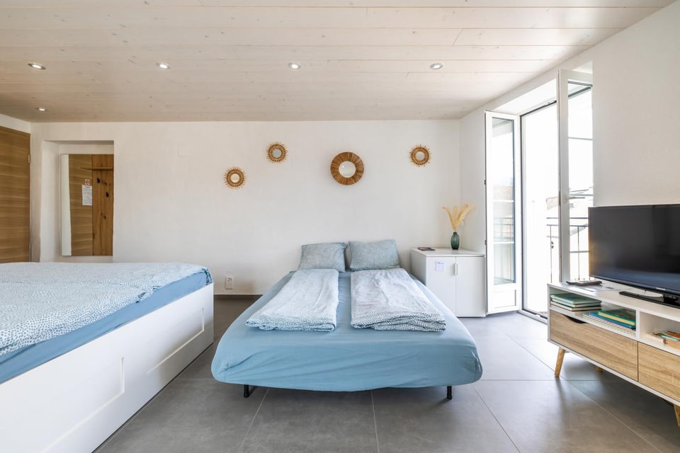 Aloha chambres ligger 17 km fra Montreux Station og tilbyder indkvartering med balkon. Enhederne har terrasse, aircondition, fladskærms-tv og privat badeværelse med bruser og gratis toiletartikler. Der er også en minibar, samt kaffemaskine og kedel.