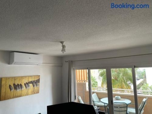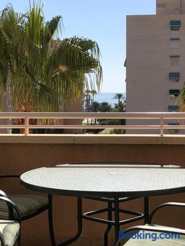 Boasting air-conditioned accommodation with a pool with a view, garden view and a patio, Precioso apartamento en Urbanización junto al mar. Is situated in Alicante.