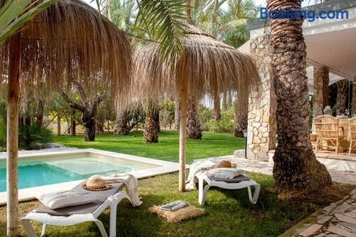 Casa con encanto en un jardín espectacular, a 2h de Madrid en tren ligger i Elche. Her er gratis wi-fi og udsigt til en have. Derudover er der en udendørs swimmingpool og en terrasse. Dette feriehus har privat pool, have og gratis privat parkering.