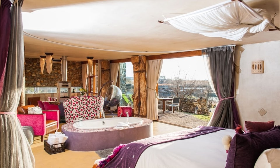 Forum Homini Boutique Hotel is set within a residential wildlife estate, only 13 km outside of Muldersdrift. It offers luxurious cave-style accommodation and a fine dining restaurant.