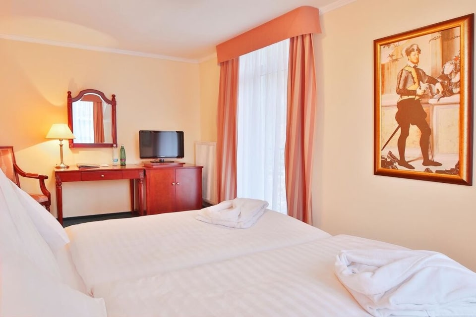 With a stay at Hotel Villa Regent in Marianske Lazne, you'll be next to a golf course, just a 1-minute walk from Slavkovsky Forest Nature Reserve and 7 minutes by foot from Ferdinand Spring Colonnade. This hotel is 1.2 mi (1.9 km) from St Vladimir Church and 1.7 mi (2.7 km) from Spa Colonnade. Stay in one of 25 guestrooms featuring flat-screen televisions. Complimentary wireless Internet access keeps you connected, and satellite programming is available for your entertainment. Bathrooms with bathtubs or showers are provided. Conveniences include safes and desks, and housekeeping is provided daily. Pamper yourself with onsite massages and body treatments. Additional amenities at this hotel include complimentary wireless Internet access and concierge services. Enjoy a satisfying meal at Restaurant Doma serving guests of Hotel Villa Regent. A complimentary buffet breakfast is served daily from 7:30 AM to 10 AM. The front desk is staffed during limited hours. Free self parking is available onsite.