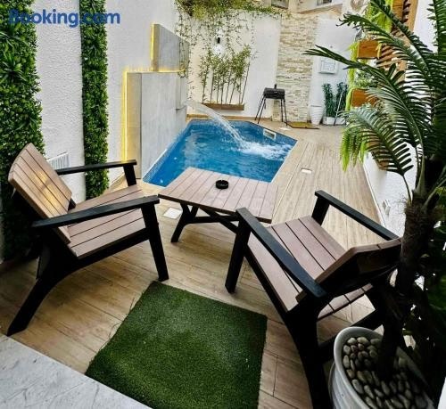 DARZAYNAH ligger i Monastir. Her er gratis wi-fi og udsigt til en have. Derudover er der en udendørs swimmingpool og en terrasse. Denne lejlighed har privat pool, have og gratis privat parkering.