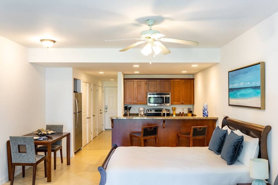 Denne lejlighed befinder sig tæt på stranden i The Bight – et område i Providenciales. Stedets naturskønne områder kan opleves med et besøg til Grace Bay Strand og Long Bay Beach. Benyt lejligheden til at udforske områdets udendørsoplevelser som vandre-/cykelruter. Denne lejlighed ved stranden ligger tæt på attraktioner som cykeludlejning, gå-/cykelruter med mere og har det hele inden for rækkevidde. Takket være muligheden for parkering på stedet kan du enten stille bilen og gå de fem minutter til fods til Lucayan Archipelago eller nemt tage en hurtig køretur på 8 minutter til Grace Bay Strand. Slap af på den møblerede terrasse, hvor du kan nyde godt af stedets udendørs møbler. Du kan også nippe til en drink i haven ved denne lejlighed. Skal der ske lidt andet, kan du gøre brug af stedets gratis Wi-Fi og tv. Et spiseområde, et pengeskab, aircondition og en loftsventilator er nogle af de faciliteter, du finder i denne feriebolig med 1 soveværelse. Tilbered et hjemmelavet måltid mad i overnatningsstedets køkken, der råder over en ovn, en fryser og et køleskab samt en isterningemaskine, en hummergryde og en mikrobølgeovn. Eftersom der er en tørretumbler, behøver du ikke pakke så meget.