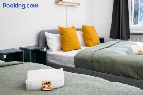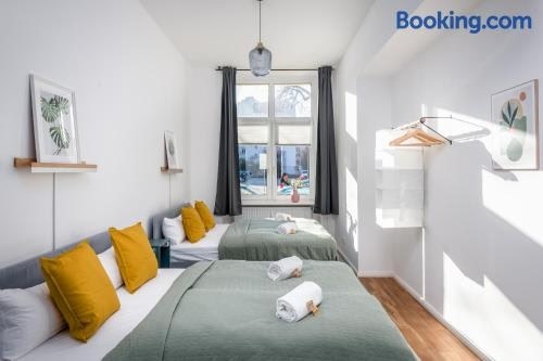 Spacious and Stylish Accommodation in BerlinLuxurious Amenities: Enjoy a 3-bedroom apartment with a flat-screen TV, fully equipped kitchen, and 2 bathrooms for your comfort. Benefit from a private entrance for added privacy.Convenient Location: Situated just 3.8 km from Memorial of the Berlin Wall and 4.1 km from Alexanderplatz Underground Station, explore Berlin with ease. Berlin Cathedral and Berlin TV Tower are also nearby.Exceptional Services: Experience a 24-hour front desk, private check-in/out, and free WiFi throughout the property. Towels and bed linen are provided, making your stay hassle-free.Book now for a memorable stay at Sonnig und Helle Wohnung Alexanderplatz in 15min zu erreichen, sehr schön und groß für Gruppen geeignet.