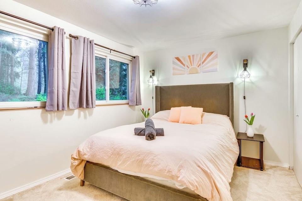 Dette feriehus befinder sig i Cottage Lake – et område i Woodinville. Woodinville Whiskey Co og Chateau Ste. Michelle er begge et besøg værd, hvis oplevelser står på agendaen, mens dem der er interesseret i seværdigheder, kan kigge forbi Woodland Park Zoologisk Have og K1 Speed Seattle. Ser du frem til et event eller en sportbegivenhed under din rejse? Se, hvad Marymoor Park eller Olympic View Arena har på programmet. Dette sommerhus med masser af hjerterum ligger i Woodinville og lader dig opleve lidt af det hele. Overnatningsstedet råder bekvemt nok over parkering på stedet, så du kan nemt tage den hurtige køretur på 5 minutter til Chateau Ste. Michelle eller de 4 minutters kørsel til Woodinville Whiskey Co. Efter at du har fundet dig til rette i ferieboligen, kan du nyde godt af 4 soveværelser og 3 badeværelser samt en stue, aircondition og et skrivebord. Log på stedets gratis Wi-Fi, eller slå dig ned foran tv'et. Overnatningsstedets køkken er udstyret med en ovn, en kogeplade og en opvaskemaskine samt en kaffemaskine, en isterningemaskine og en mikrobølgeovn. Der er en vaskemaskine, så du behøver endda ikke pakke så meget. Andre faciliteter omfatter sengelinned, et strygebræt og varme.