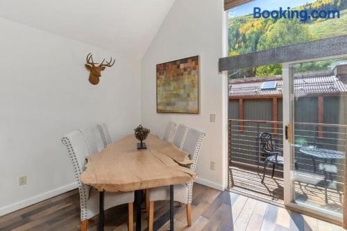 Luxury Condo - Open for Bluegrass ligger i Telluride og har en gårdhave samt gratis wi-fi. Dette feriehus med 2 soveværelser har stue med tv, et fuldt udstyret køkken med køleskab og opvaskemaskine samt 3 badeværelser med gratis toiletartikler.